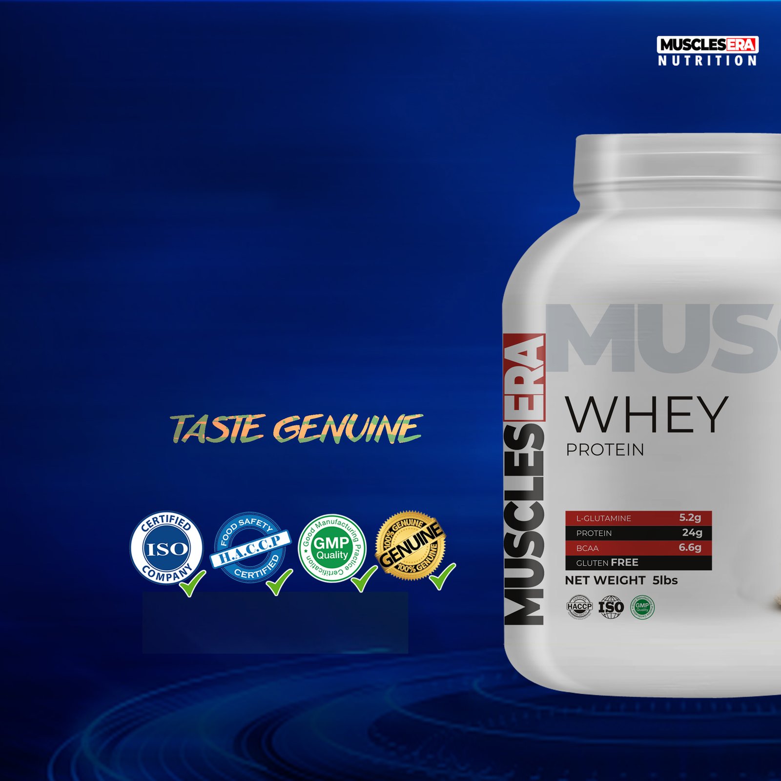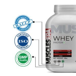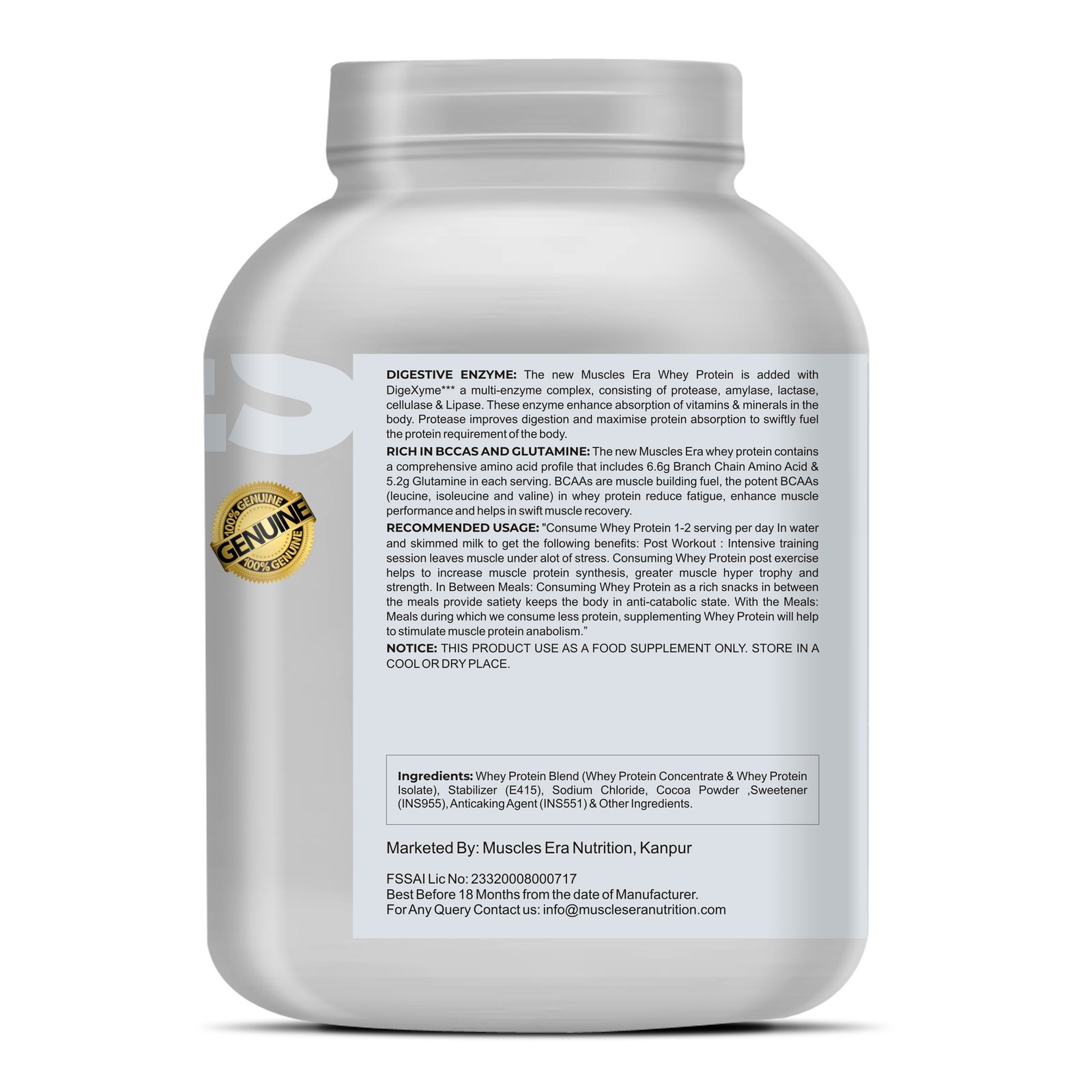 Muscles Era whey protein contains a comprehensive amino acid profile that includes 6.6g Branched Chain Amino Acids & 5.2g Glutamine in each serving. BCAAs are muscle building fuel, the potent BCAAs (leucine,isoleucine and valine) in whey protein reduce fatigue, enhance muscle performance and helps in swift muscle recovery.